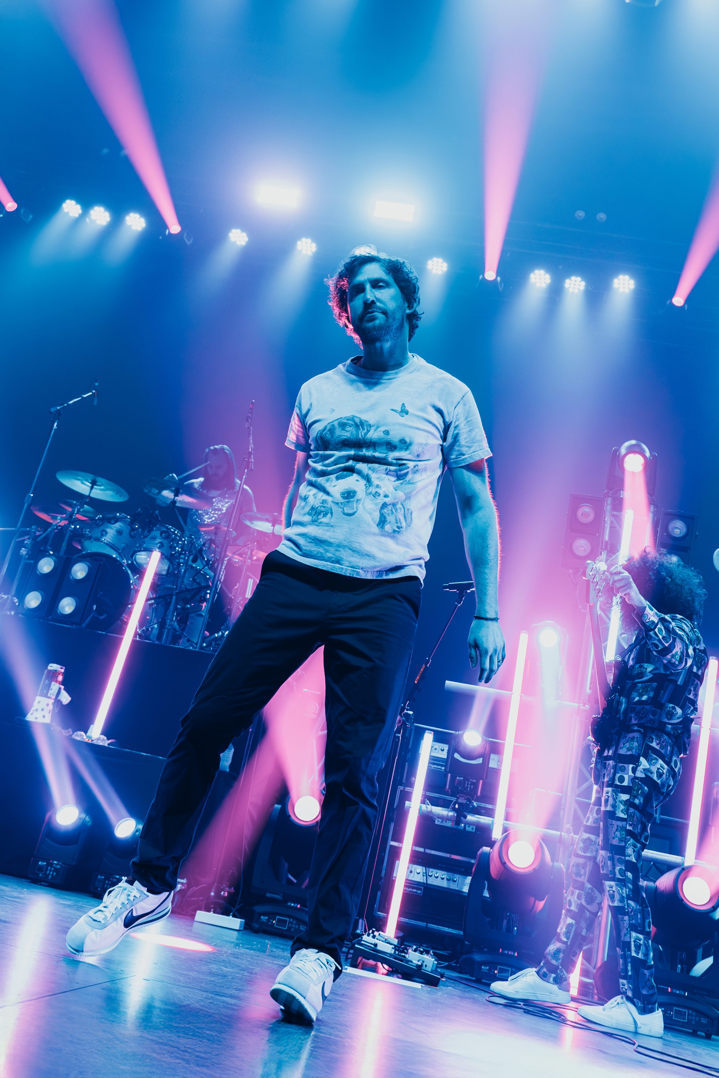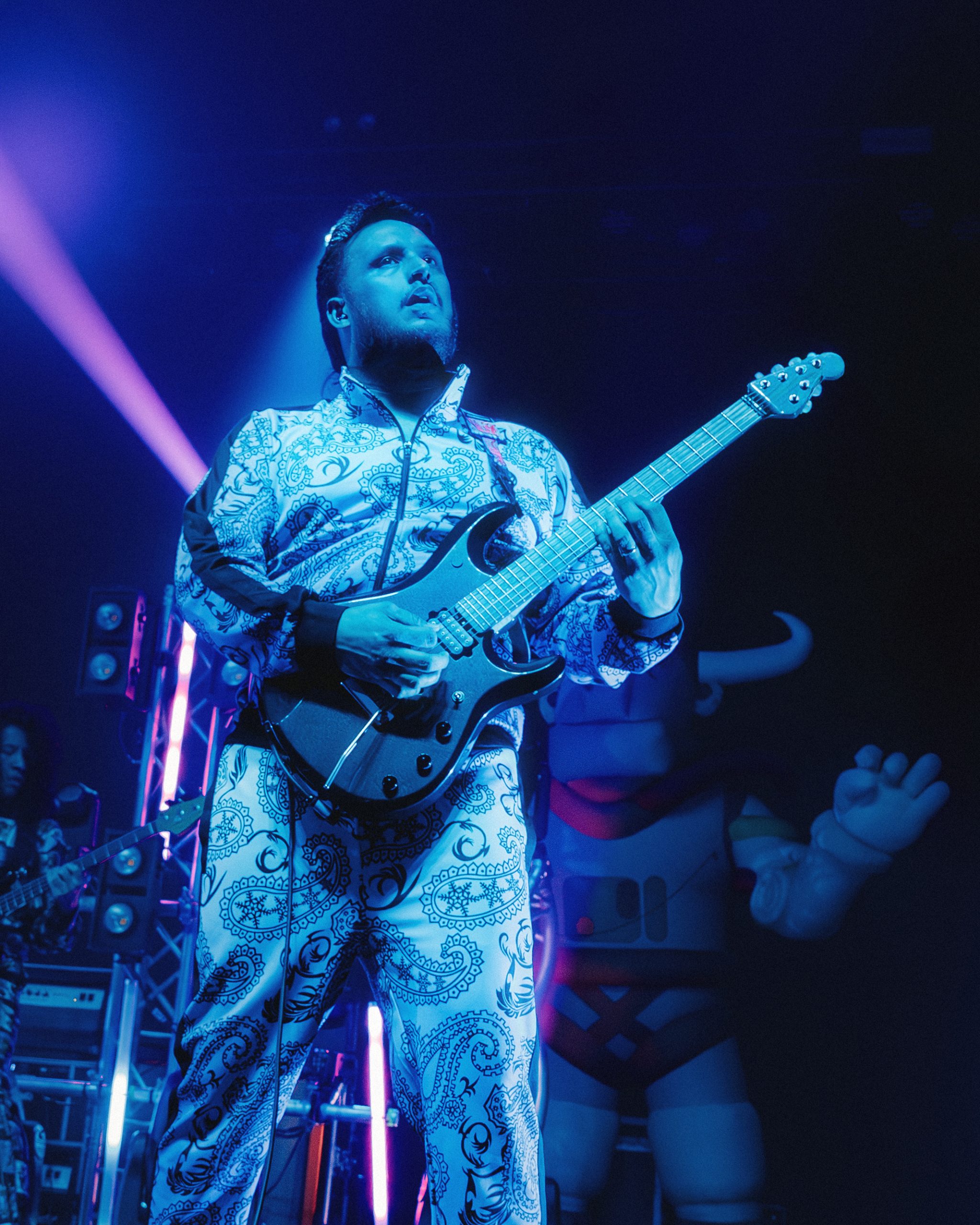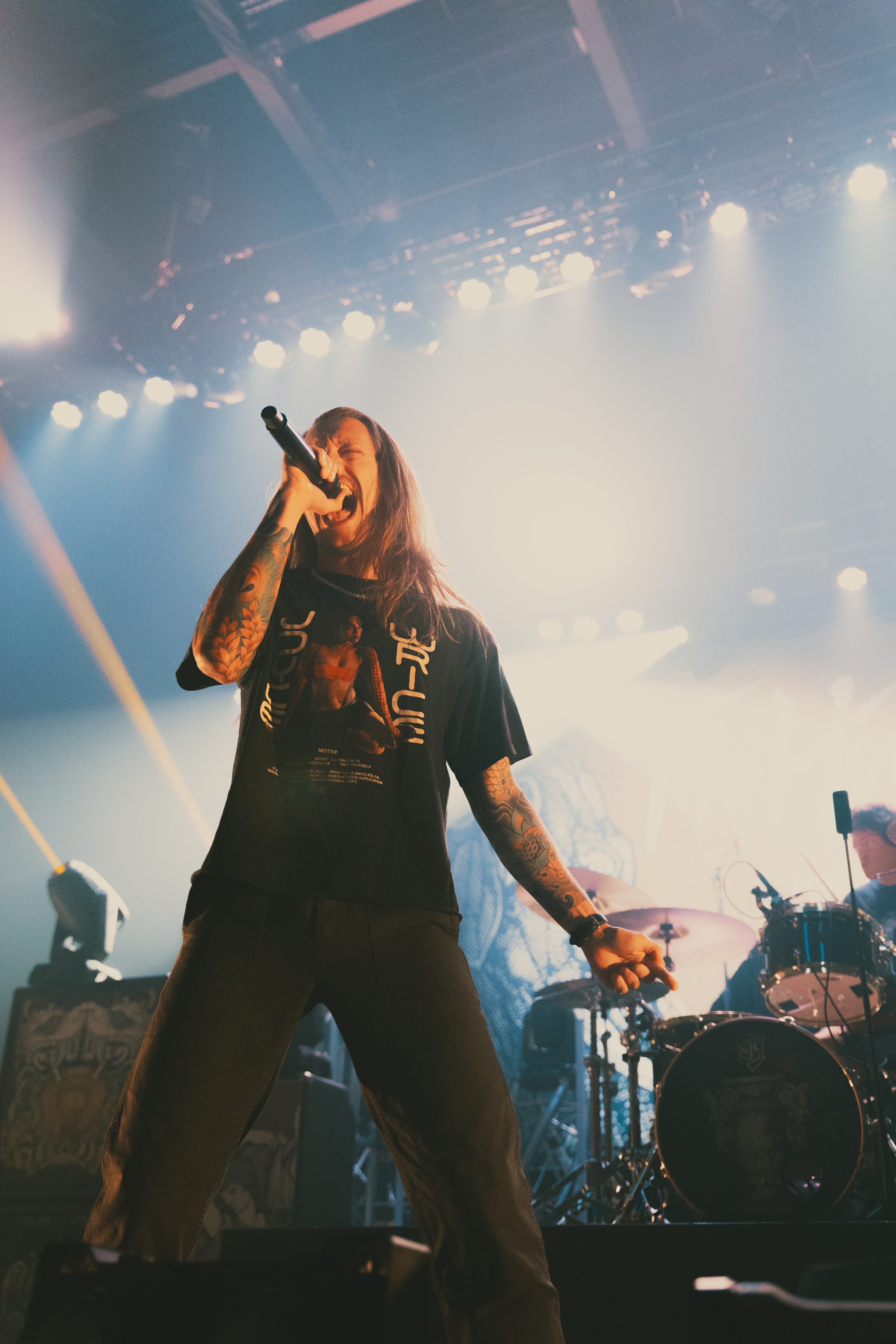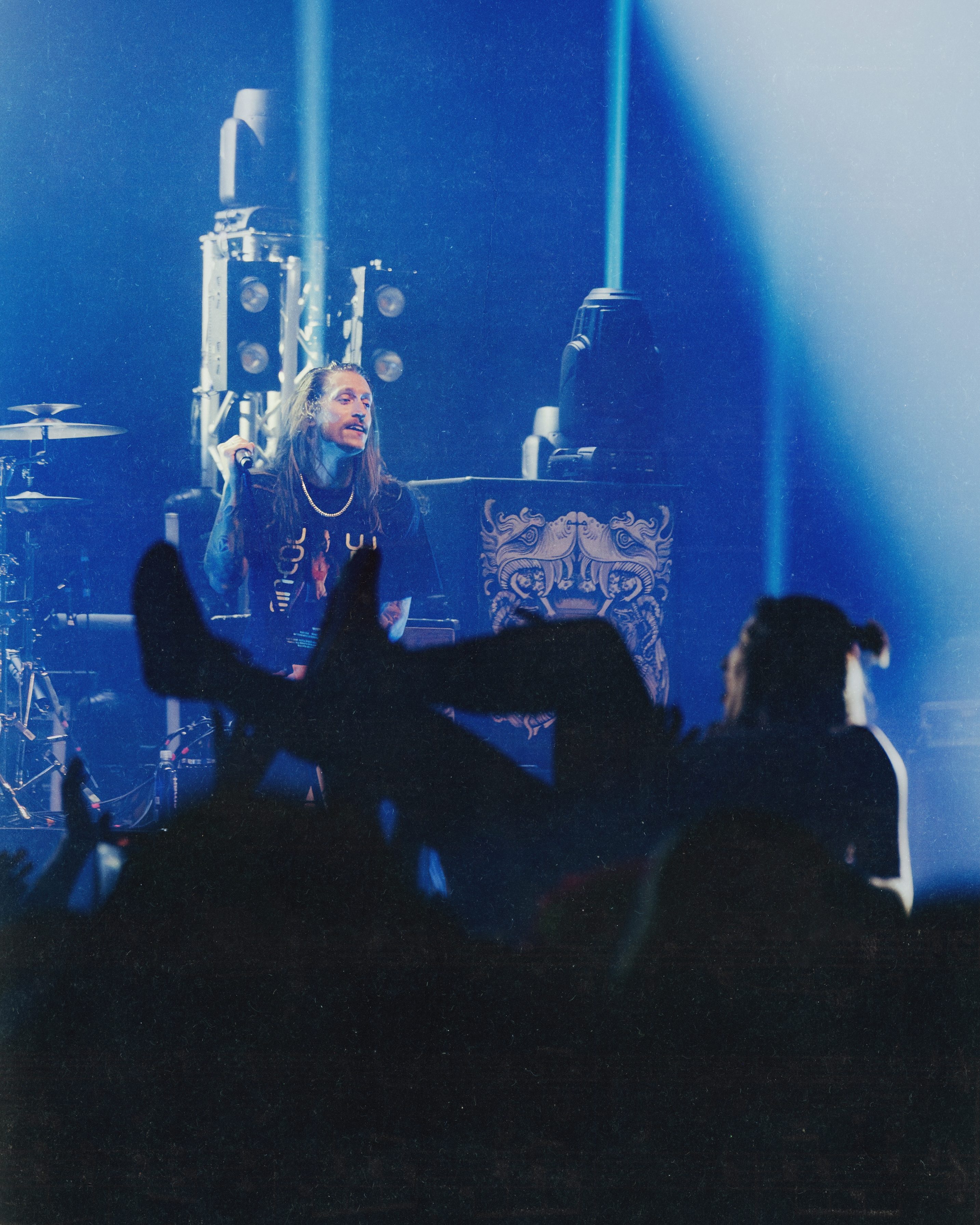Dance Gavin Dance leaned into their funk-meets-heavy style, opening with newer tracks “Speed Demon” and “War Machine,” before diving into deeper cuts. Lead vocalist Andrew Wells asked the crowd, “Who here has been a fan of Dance Gavin Dance since they were in high school?” Lots of hands went up, including Andrew’s! The setlist was a treat for those day-one fans, including “Blue Dream,” “The Backwards Pumpkin Song,” “Burning Down the Nicotine Armoire,” and two chapters of the Robot saga.