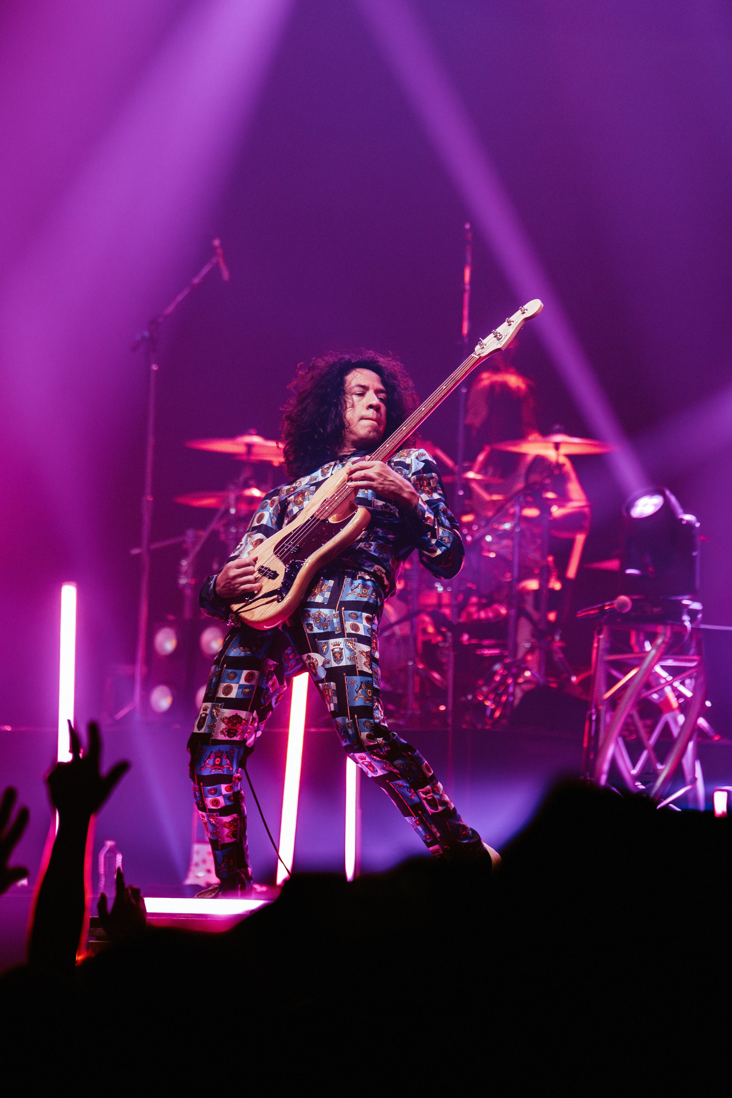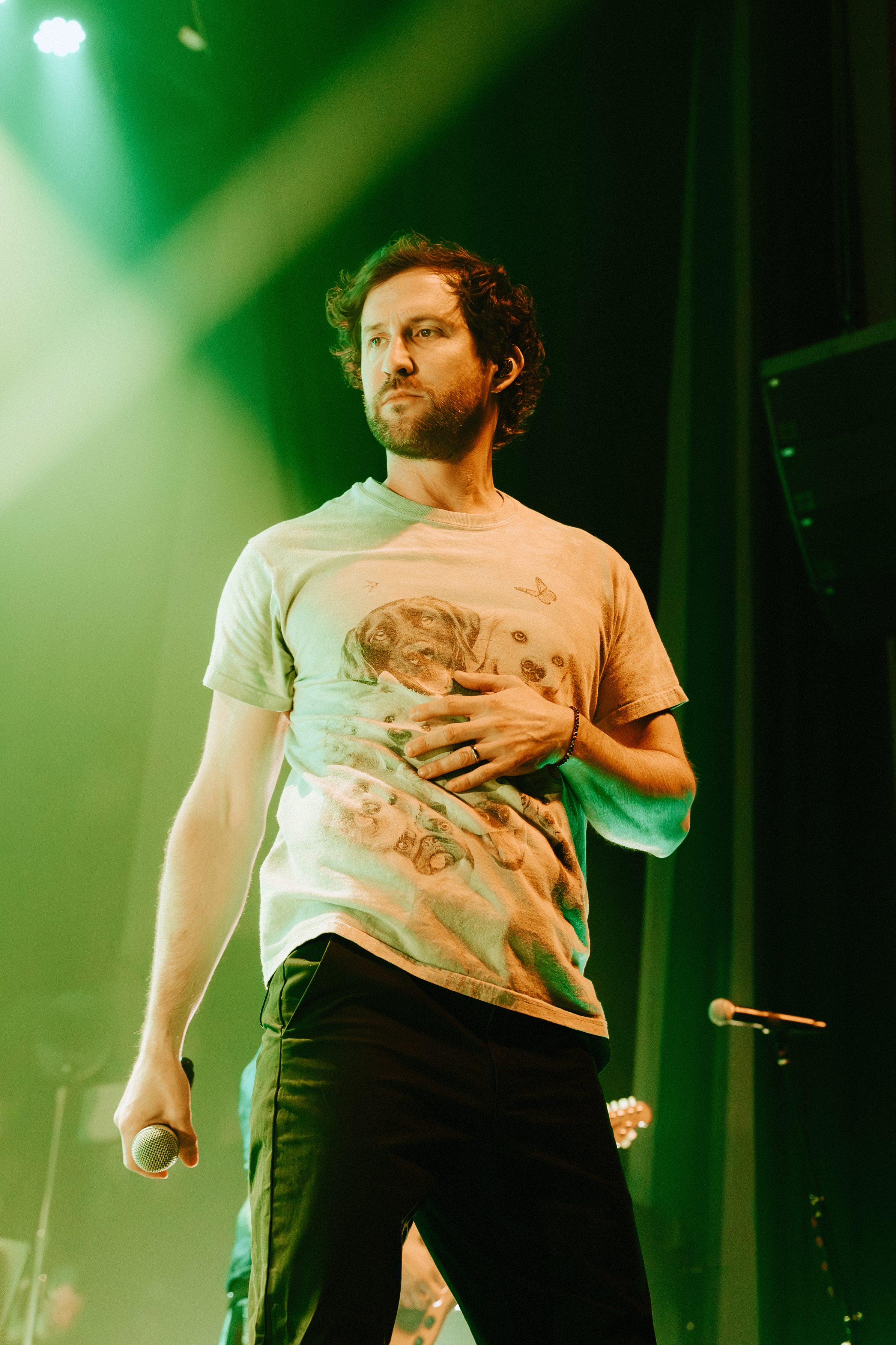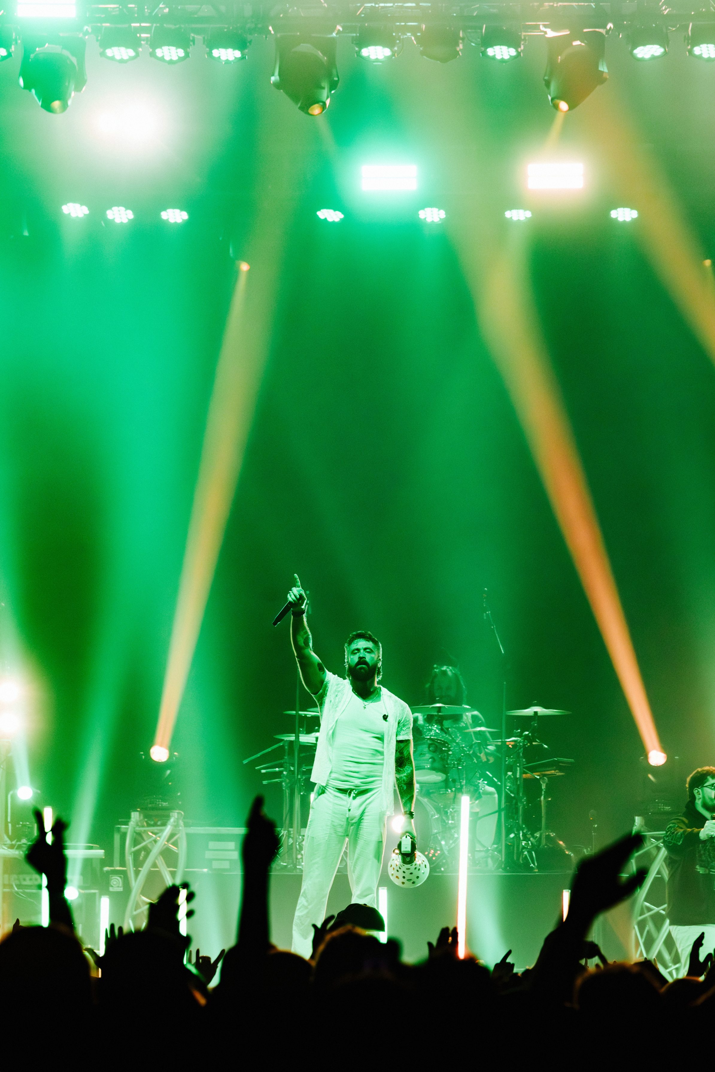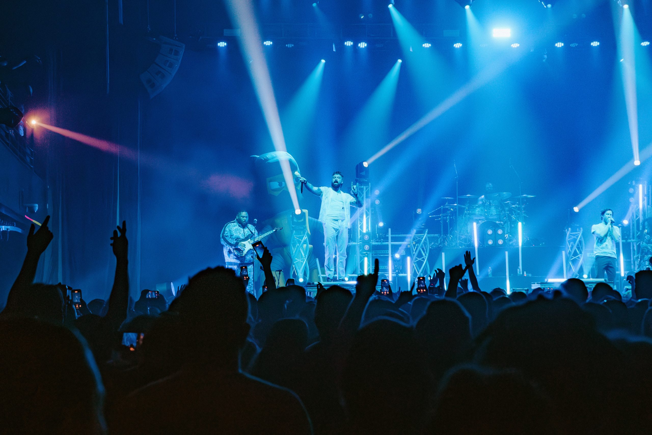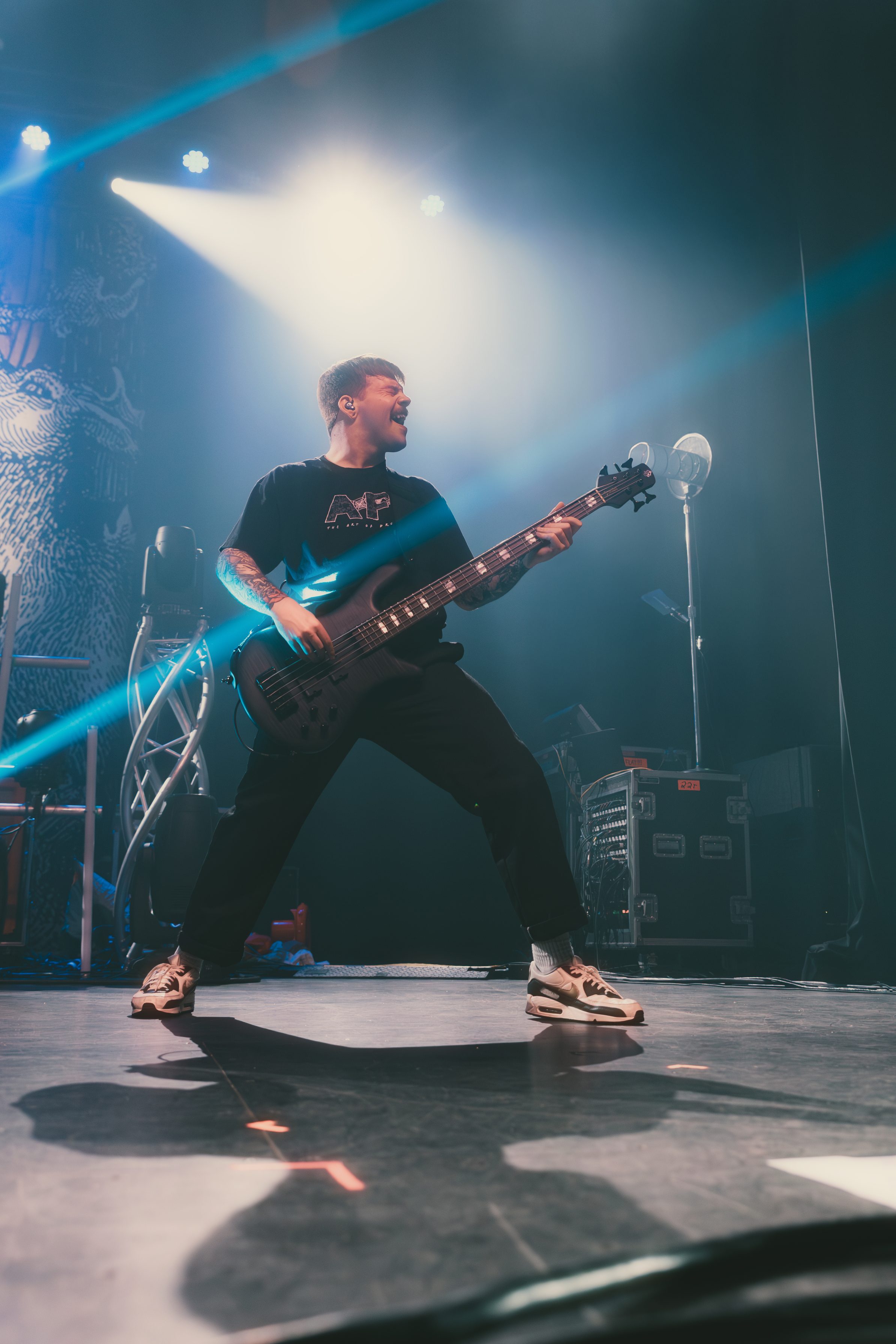 Dance Gavin Dance leaned into their funk-meets-heavy style, opening with newer tracks “Speed Demon” and “War Machine,” before diving into deeper cuts. Lead vocalist Andrew Wells asked the crowd, “Who here has been a fan of Dance Gavin Dance since they were in high school?” Lots of hands went up, including Andrew’s! The setlist was a treat for those day-one fans, including “Blue Dream,” “The Backwards Pumpkin Song,” “Burning Down the Nicotine Armoire,” and two chapters of the Robot saga.