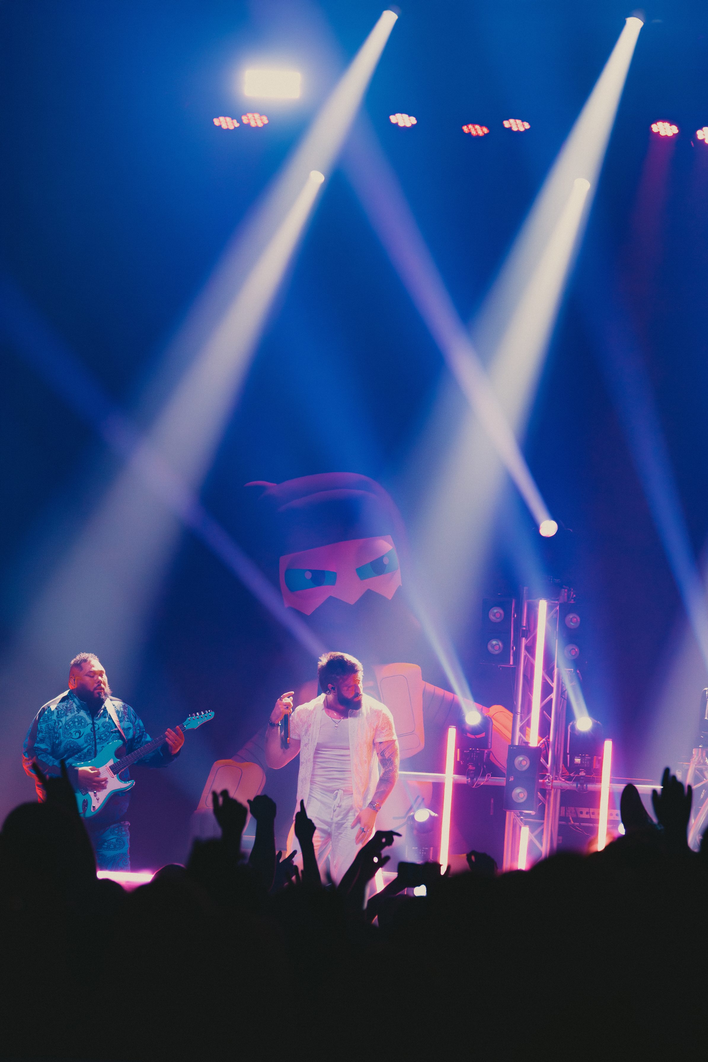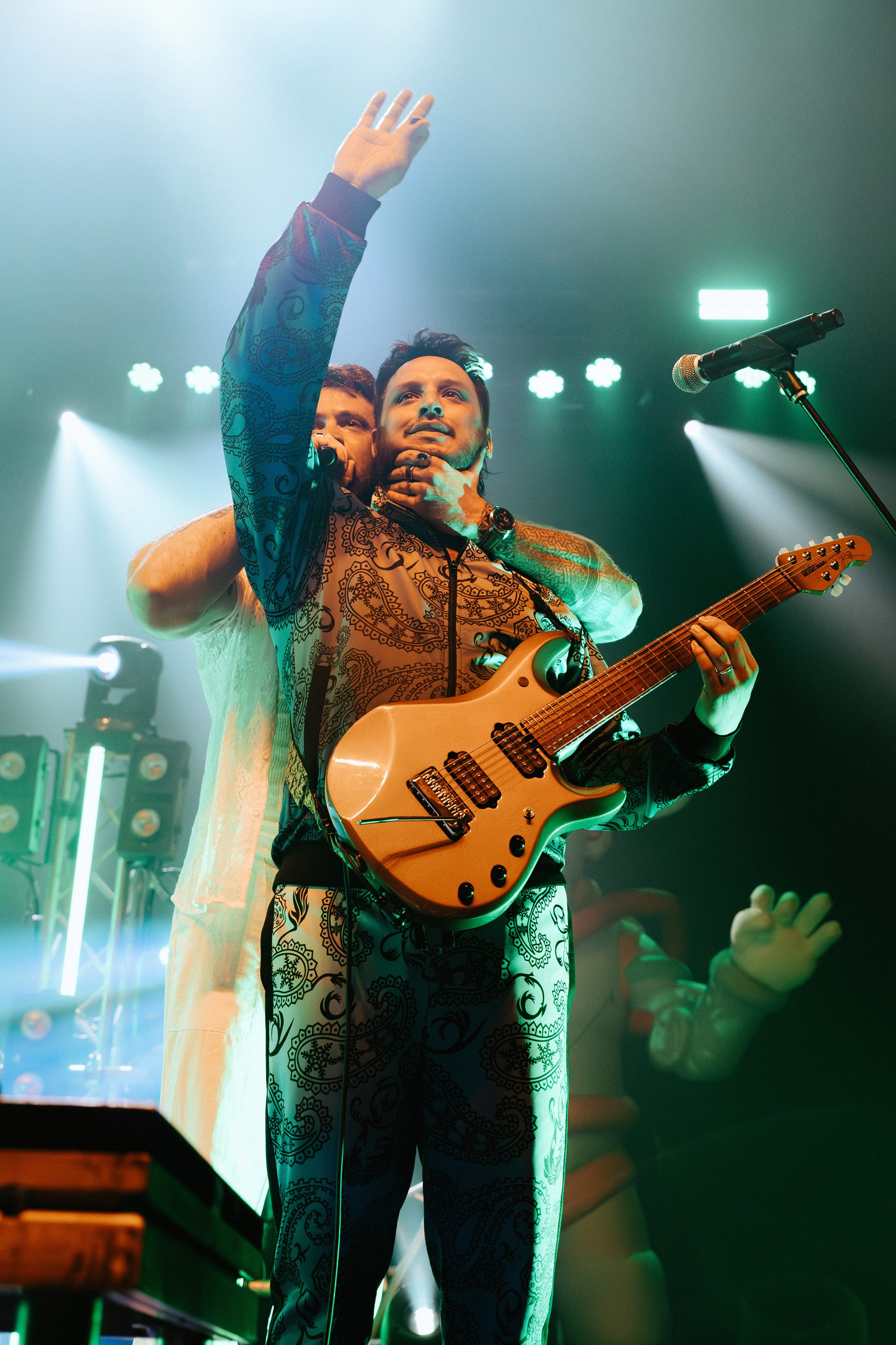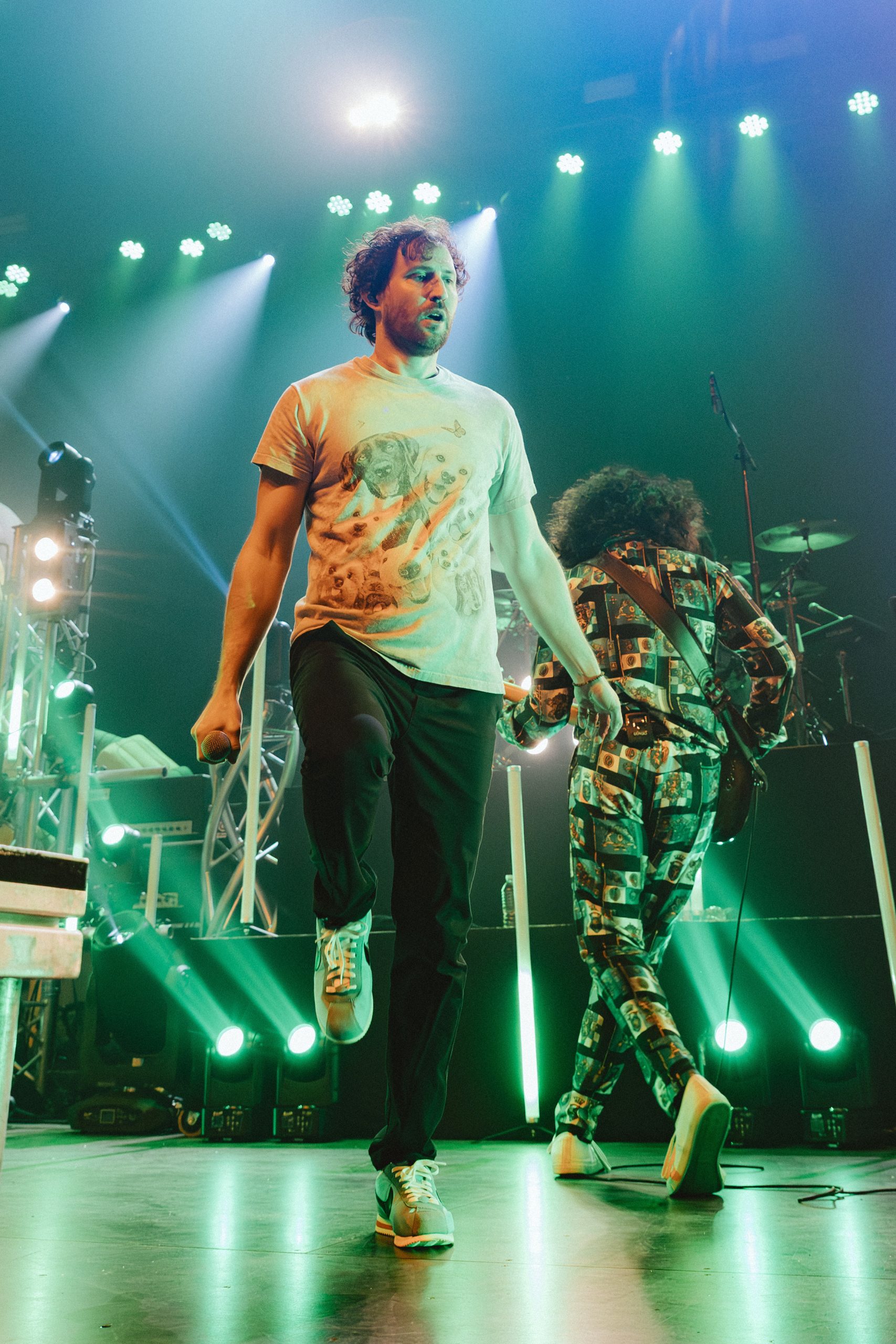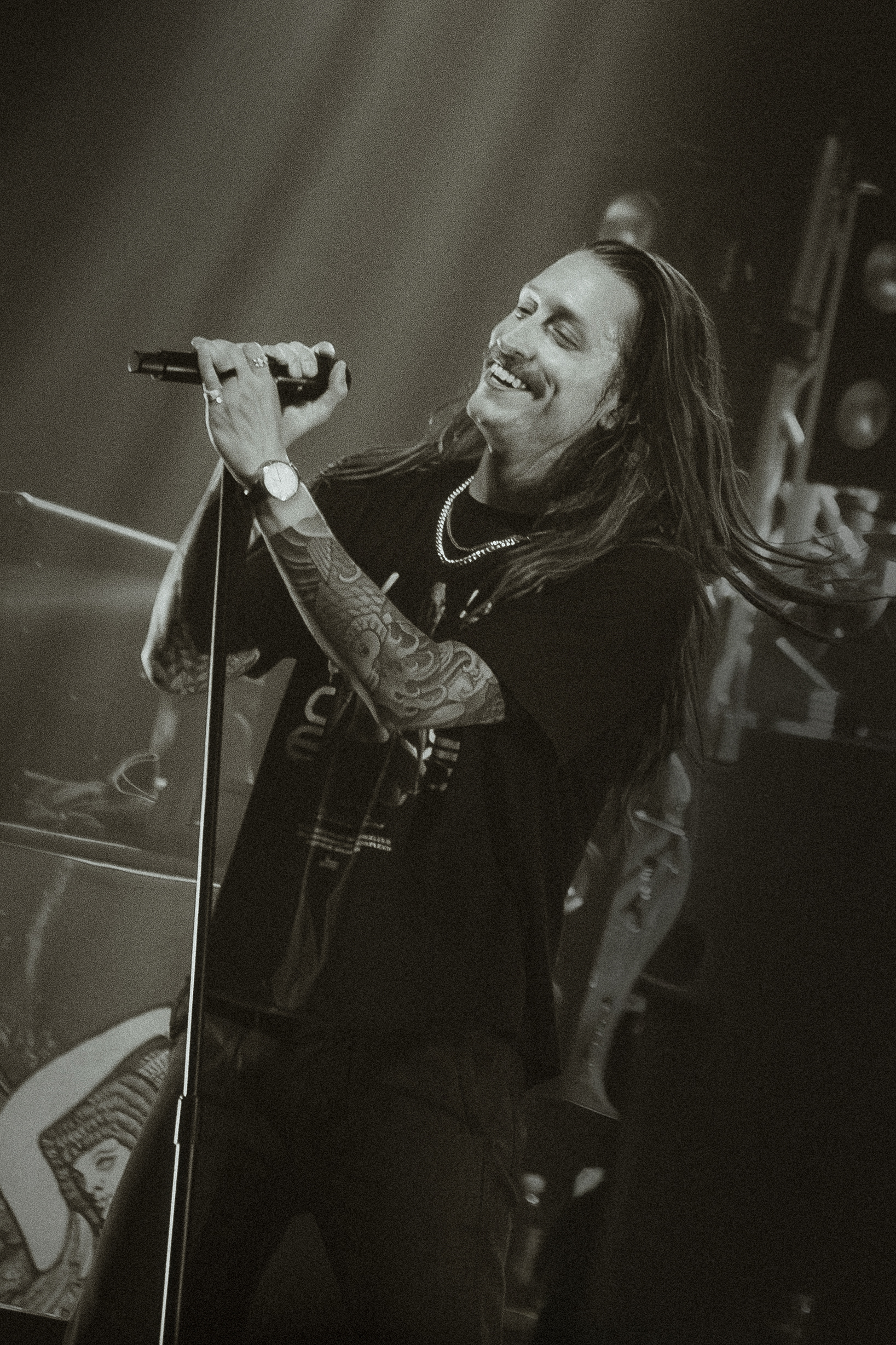Dance Gavin Dance leaned into their funk-meets-heavy style, opening with newer tracks “Speed Demon” and “War Machine,” before diving into deeper cuts. Lead vocalist Andrew Wells asked the crowd, “Who here has been a fan of Dance Gavin Dance since they were in high school?” Lots of hands went up, including Andrew’s! The setlist was a treat for those day-one fans, including “Blue Dream,” “The Backwards Pumpkin Song,” “Burning Down the Nicotine Armoire,” and two chapters of the Robot saga.