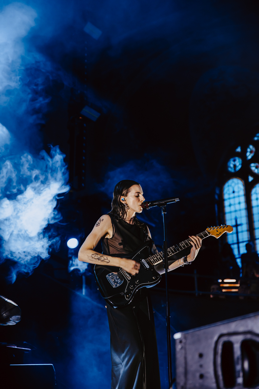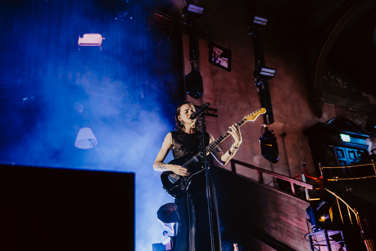 PVRIS, now fronted solely by the ever charismatic Lynn Gunn, Performed at Manchester’s iconic Albert Hall to commemorating the 10th anniversary of their breakthrough debut, White Noise. For those that haven’t visited Manchester Albert hall It’s a grade II listed building from 1910 boasting is a breathtaking blend of historic grandeur, I was overwhelmed with how beautiful the building was as it was my first time here, It featured Gothic architecture with vaulted vaulted and massive stained-glass windows the whole way around building which I feel fitted the aesthetic of the White Noise era vert well.